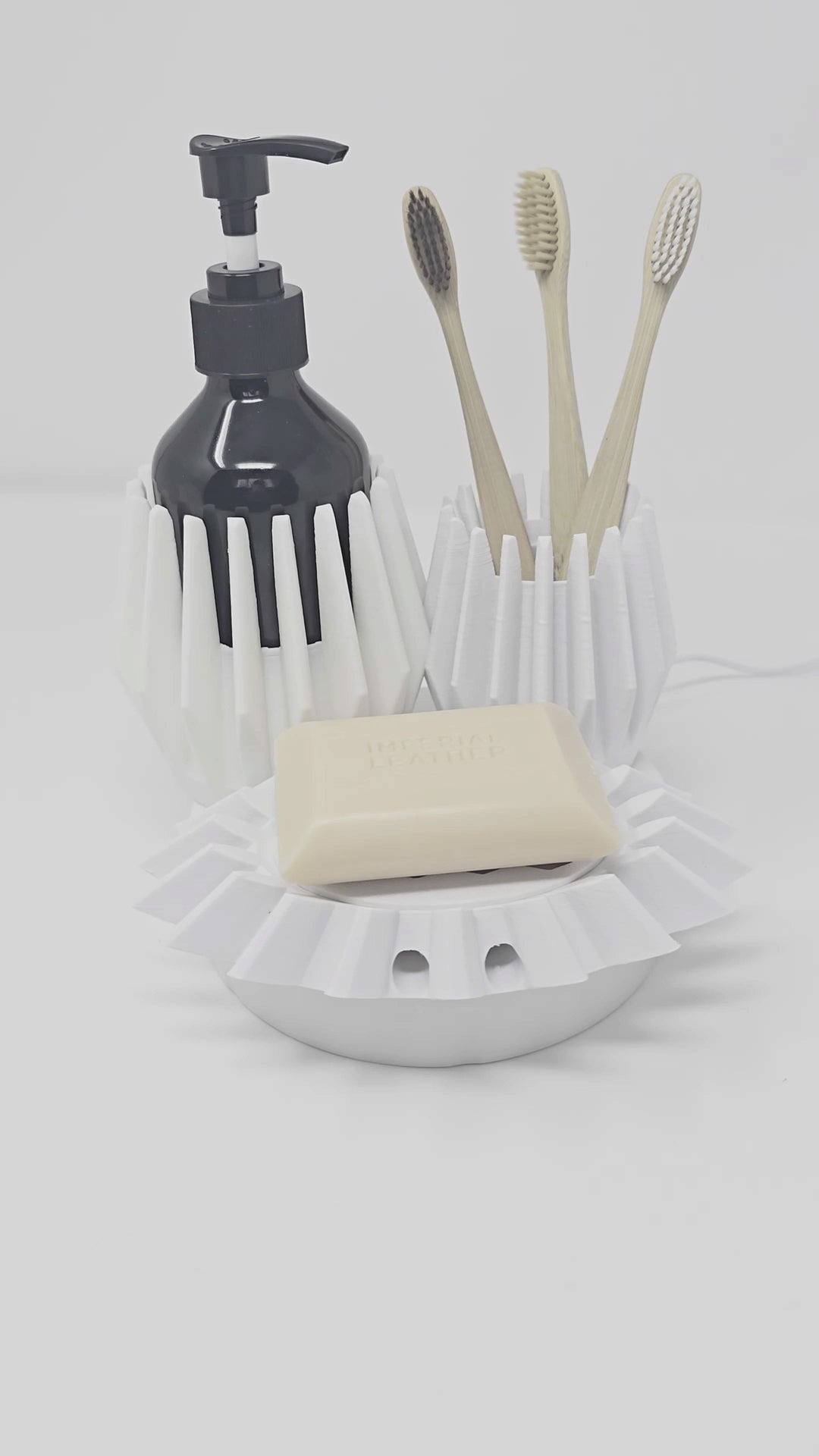 3D Printed Bathroom Set โ Soap Dish, Toothbrush Holder & Soap Dispenser Sleeve
